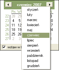 . Kliknięcie w pasek z nazwą miesiąca rozwija listę miesięcy; możemy na niej wskazać ten, który nas interesuje.