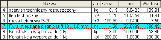 Uwaga 3: W przypadku materiałów, ceny widoczne na ekranie mogą być wyższe niż ceny wprowadzone przez użytkownika. Oznacza to, że w opcjach kosztorysu ustawiono sposób liczenia kosztów zakupu przez doliczanie ich do ceny jednostkowej.