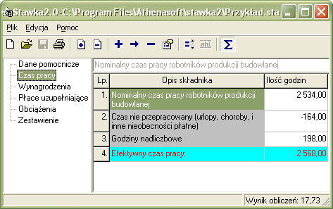 Sposób pracy z programem Stawka 2 został szczegółowo opisany w Pomocy, więc tu nie będę się na ten temat rozpisywał. Powiem tylko, że wynik obliczeń należy zapisać w pliku, aby mógł być odczytany przez Normę. Wprawdzie Stawka została opracowana w celu kalkulacji stawki robocizny kosztorysowej, ale jej możliwości pozwalają na kalkulację ceny dowolnego elementu RMS.