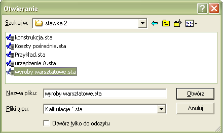 Rys. 14. Okno wyboru kalkulacji
