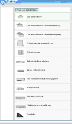 Za pomocą myszki lub klawiatury wybieramy interesujący nas typ obiektu i przechodzimy do określenia potrzebnych nam danych. Podczas dokonywania wyboru wspomaga nas informacja widoczna w panelu obok każdego z obiektów.