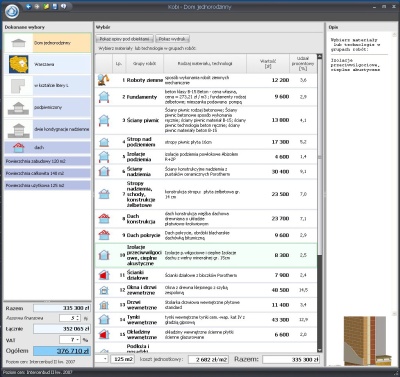 Dzięki możliwości wyboru różnych technologii i różnych materiałów, użytkownik może porównać koszty różnych wariantów wykonania.