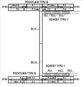 | Warianty rozwiązań układów pochylnia + schody |