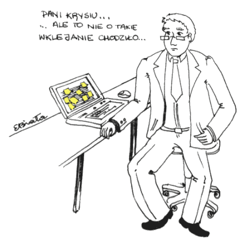 Jak pan sobie wyobraża weryfikację dokumentacji, którą opracowują zespoły rozsiane po całej Polsce i to jeszcze za najniższą cenę. Ponadto, proszę łaskawie pamiętać, że projekty są wytwarzane przy pomocy komputerów. A w komputerach mamy taką funkcję: kopiuj–wklej. Dlatego z opisu do pewnego projektu budynku niepodpiwniczonego dowiedziałem się, że w piwnicy mam skosztorysować posadzkę z żywic epoksydowych na bardzo solidnie zaizolowanym podłożu. Sam przyznaję się z ogromnym wstydem, że korzystając z tej opcji spowodowałem awanturę fundując pewnemu przedszkolu filar mostowy. Wszystko „bez te komputry”, jak mi powiedziała pewna pani sprzątająca biuro, a zwłaszcza to cholerne kopiuj–wklej.