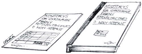 Po drugim dniu telefonów, maili i smsów, łącznie z przesyłaniem przykładowych dokumentów, okazało się, że oczekuje się od nas przygotowania tabeli w Excelu, zawierającej od 5 do 10 punktów opisujących scalone zakresy robót wraz z podaniem szacunkowego kosztu każdego z tych zakresów oraz ryczałtowej kwoty za całość instalacji. Odetchnęłam z ulgą. Kosztorys w ciągu 3 godzin „wyrzeźbił” automatyk.