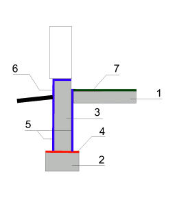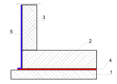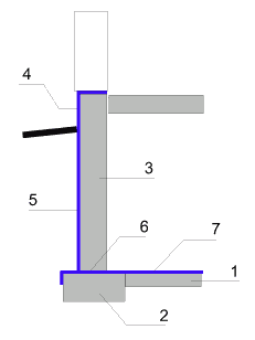 Rys. 1 Układ hydroizolacji przy posadowieniu na ławach fundamentowych |