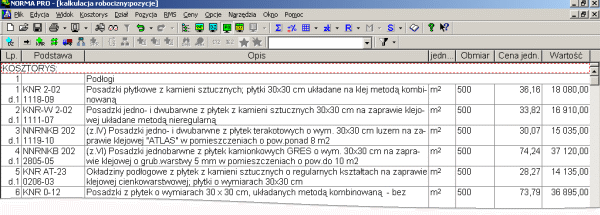 Po pierwsze robocizna (patrz – kosztorys: kalkulacja robocizny. Uwaga: w kosztorysie nie ujęto materiałów, obejmuje on jedynie nakłady na robociznę i sprzęt).