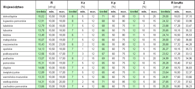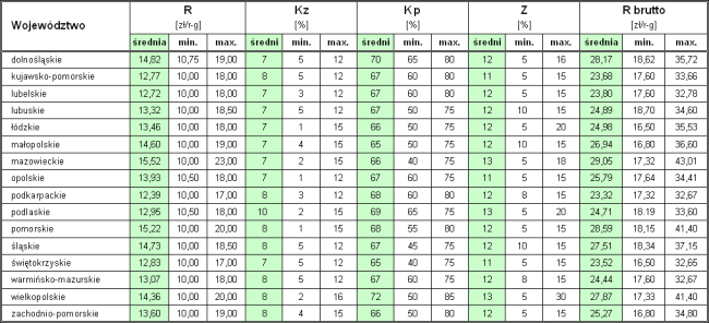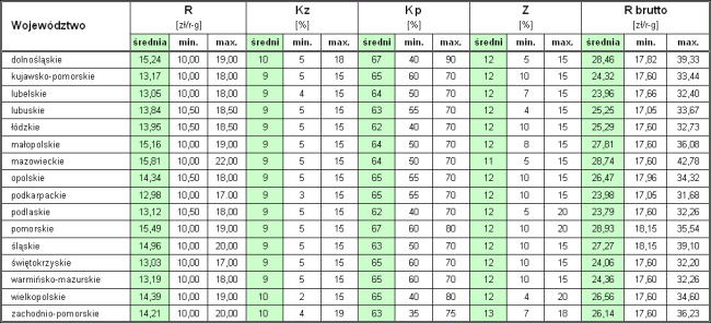 Rozrzut średnich kosztorysowych stawek robocizny w poszczególnych województwach wynosi maksymalnie 25%.