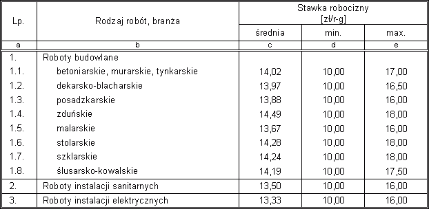 KOSZTORYSOWE STAWKI ROBOCIZNY