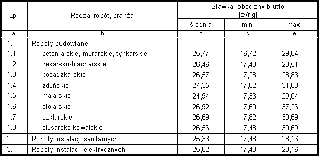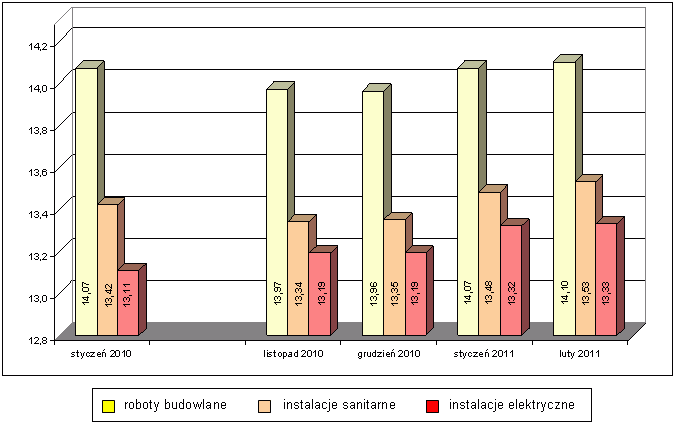Od stycznia 2010 r. do stycznia 2011 r. stawki robocizny przy robotach budowlanych nie zmieniły się, przy instalacjach sanitarnych wzrosły o 0,4%, a przy instalacjach elektrycznych wzrosły o 1,6%.