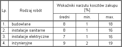 W wartościach narzutów odnotowano jedną zmianę. Dotyczy ona wskaźnika kosztów pośrednich przy robotach inżynieryjnych, który zmniejszył się o jeden punkt procentowy. Pozostałe narzuty nie zmieniły się.