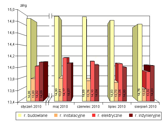 W porównaniu z II kwartałem 2010 r. stawki robocizny brutto zmalały przy robotach budowlanych o 0,6%, instalacjach sanitarnych o 0,9%, instalacjach elektrycznych o 1,6%, a przy robotach inżynieryjnych o 0,8%.