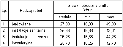 Tablica 5 przedstawia wartości robocizny brutto, tj. zawierające kosztorysowe stawki robocizny oraz odniesiony do nich narzut kosztów pośrednich i narzut zysku. Stawki robocizny brutto są bardzo istotnym źródłem informacji o zmianach stosowanych przez wykonawców narzutów.