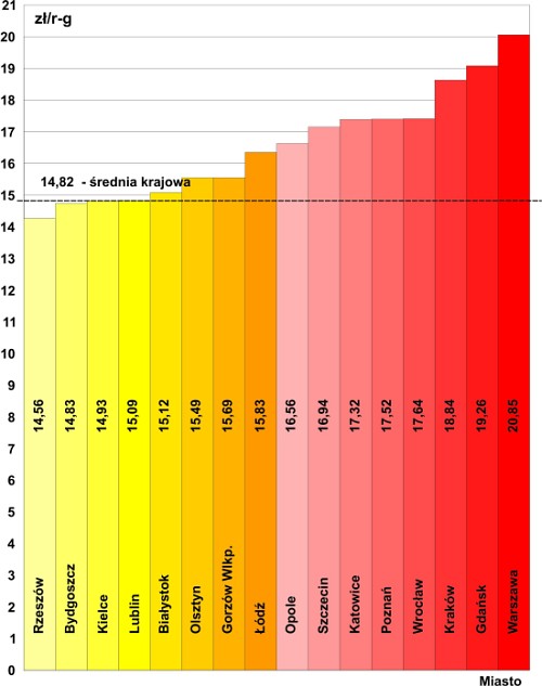 W uzupełnieniu regionalnych informacji o kosztorysowych stawkach robocizny i narzutach, w rozdziale tym prezentuję dane z wybranych większych miast. Dopełnieniem obrazu jest wykres kosztorysowych stawek robocizny dla robót budowlanych w poszczególnych miastach na tle średniej stawki krajowej.