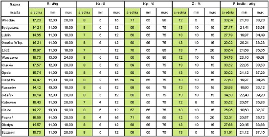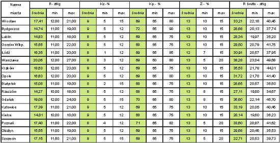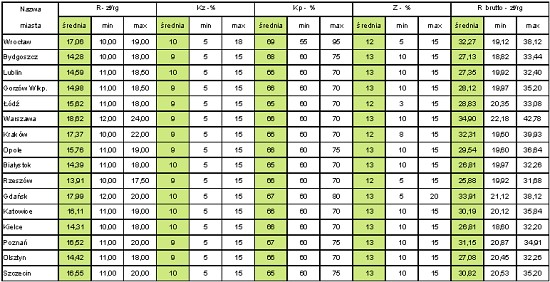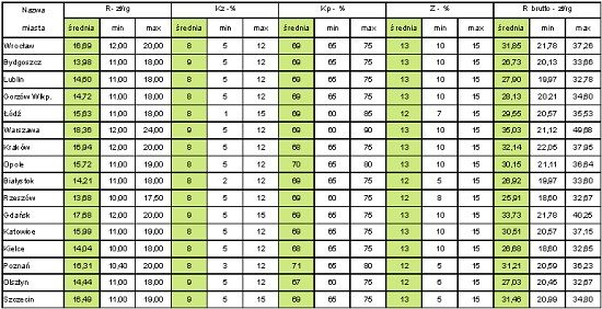 Z informacji zamieszczonych w poniższych tablicach wynika, że w badanych miastach najwyższe stawki robocizny brutto, bez względu na rodzaj robót, odnotowano w Warszawie, a najniższe w Rzeszowie, Bydgoszczy, Kielcach i Lublinie.