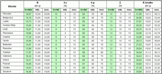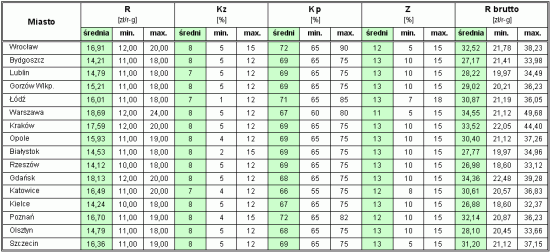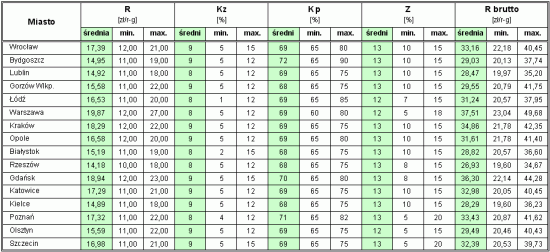 Z informacji zamieszczonych w poniższych tablicach wynika, że w badanych miastach najwyższe stawki robocizny brutto, bez względu na rodzaj robót, odnotowano w Warszawie, a najniższe w Rzeszowie i Kielcach.