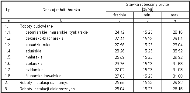 KOSZTORYSOWE STAWKI ROBOCIZNY