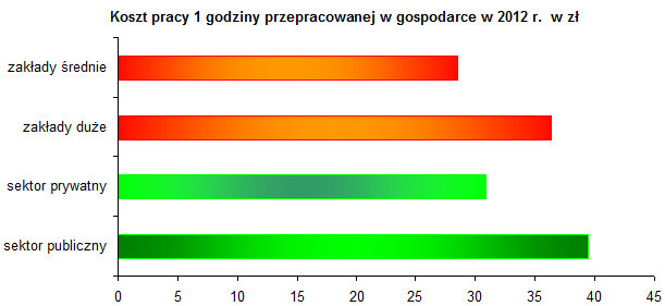 W 2012 r. w sektorze publicznym koszty pracy były wyższe niż w prywatnym. Pracodawca musiał wyasygnować o 13% więcej środków finansowych na zatrudnienie jednego pracownika w sektorze publicznym niż prywatnym. „Droższa” była również w sektorze publicznym 1 godzina opłacona o 25%, a 1 godzina przepracowana o 28%.