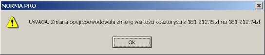 Rys.5. Komunikat o zmianie wartości kosztorysu