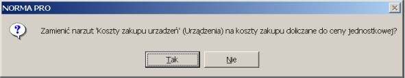 Rys.6. Pytanie o wliczenie narzutu do ceny jednostkowej