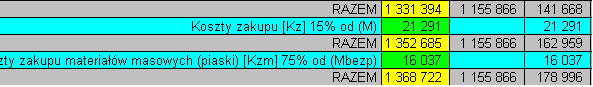 Gdy już wszystkie materiały masowe zostały przyporządkowane do grupy piaski, musimy odpowiednio zdefiniować narzuty. W tym celu dodajemy do podsumowania narzut Koszty zakupu materiałów masowych.