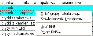 Rys. 5. Menu podręczne w zestawieniu materiałów