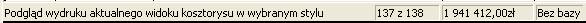 Znaczenia ikon umieszczonych na paskach narzędzi nie będę opisywał, gdyż każdy z Państwa je zna, a jeżeli nie - to wyjaśnienia można znaleźć w instrukcji obsługi. Przypomnę jedynie znaczenie poszczególnych informacji na pasku komunikatów, który w przeciwieństwie do pasków narzędziowych znajduje się u dołu ekranu. Patrząc od lewej strony ekranu zobaczymy na tym pasku: wyjaśnienie znaczenia ikony, którą aktualnie wskazuje kursor, numer wybranej pozycji wraz z informacją o ilości pozycji w kosztorysie, wartość końcową kosztorysu oraz nazwę cennika podłączonego do kosztorysu (lub informację, że nie jest podłączony żaden).