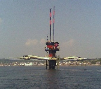 Ciekawym rozwiązaniem wydaje się być projekt zastosowania pływających elektrowni. W tym celu wykorzystano by statki z instalacją specjalnych boi. W momencie kiedy statek osiągnie odpowiednią pozycję na morzu, boje byłyby opuszczane na specjalnych wysięgnikach zamontowanych na burtach statku. Ruch fal w górę i w dół powodowałby produkcję energii elektrycznej w bojach, która magazynowana byłaby w akumulatorach umieszczonych na pokładzie. Po przybyciu do portu zmagazynowana elektryczność byłaby oddawana do sieci. Projekt zakłada instalację na statkach akumulatorów o pojemności 20 MWh, więc do pełnego ich naładowania statek musiałby przebywać na morzu 20 godzin.