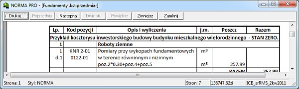 Zmiany będą widoczne również na wydruku "Przedmiaru/Obmiaru" (rysunek poniżej).