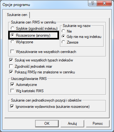 Rozszerzone wyszukiwanie cen możemy uaktywnić w menu "Opcje -> Programu" na zakładce "Szukanie cen" - wystarczy wybrać opcję „Rozszerzone (anonimy)” (rysunek poniżej).