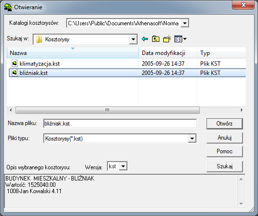 Proszę pamiętać, że można wskazać tylko jeden kosztorys jako źródło wyceny (w przypadku cenników takiego ograniczenia nie ma).