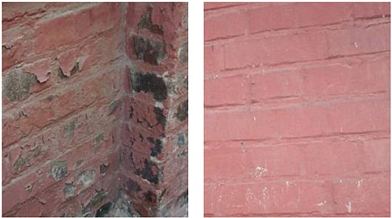 Fot. 1 – Przy naprawie i renowacji ceglanych elewacji wszelkie wymalowania olejne należy bezwzględnie usunąć.