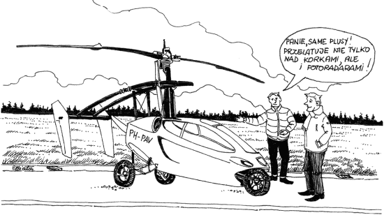 Choć pierwszy model powstał już w 1917 roku, a prace nad kolejnymi konstrukcjami rozpoczęły się na dobre po II wojnie światowej, i mimo że mamy już od kilkunastu lat XXI wiek, w codziennym użyciu pojazd ten wciąż nie występuje. Widzieliśmy go wielokrotnie na ekranach telewizorów i w kinie, z tym że towarzyszył on głównie bohaterom filmów z gatunku science-fiction. To co jednak w filmach wygląda naturalnie i funkcjonuje bez zarzutu, a przy tym jest niby łatwe do zrobienia, w warunkach rzeczywistych jest często bardzo trudnym lub wręcz niemożliwym do osiągnięcia. Okazuje się jednak nie po raz pierwszy, a i z pewnością nie ostatni, że znajdą się śmiałkowie, którzy z nierealnego stworzą coś rzeczywistego, a wtedy nowe pokolenia będą się dziwiły, że tak późno wdrożono w codzienne życie jakiś zdawałoby się prosty pomysł. O jakiej konstrukcji będzie mowa? Otóż w dzisiejszym artykule przyjrzymy się pojazdom mechanicznym przystosowanym zarówno do ruchu drogowego, jak i lotniczego, czyli samochodom latającym. Któż z nas nie marzy by wsiąść do samochodu-samolotu, którym ominiemy uliczne korki, a karetka pogotowia niemalże lotem błyskawicy będzie na miejscu wypadku i udzieli pomocy poszkodowanym? A może przyleci po nas taksówka? Zastosowania można by mnożyć. Generalnie, w dzisiejszych zakorkowanych miastach każdy pojazd, który przyspieszy poruszanie się między miejscami, jest mile widziany. A skoro każdy, to dlaczego nie wytyczyć dróg powietrznych pomiędzy lub ponad budynkami? Czy latający samochód przejmie rynek, którego wartość szacuje się na ponad 100 miliardów dolarów? Czy pisząc CV do pracodawcy wpiszemy (lub takie będą wymagania), że mamy licencję pilota samolotowego? Czy czeka nas rewolucja komunikacyjna? Pomni, jak trudno wdrażane są nowe technologie (chociażby elektryczny samochód), należy sądzić, że będziemy mieli do czynienia z ewolucją i stopniowym wchodzeniem do "cywila" konstrukcji jeżdżąco-latających. Sceptycy powiedzą, że są dostępne awionetki, helikoptery, które znakomicie sprawdzają się w małym transporcie lotniczym. Tego też zbyt wiele nie ma, a cóż jednak począć w przypadku, gdy mamy złą pogodę? Ww. konstrukcje są dosłownie uziemione i muszą czekać na polepszenie warunków atmosferycznych. Dla latających samochodów to żaden problem; gdy zmienimy tryb na samochodowy, burza nam nie przeszkodzi w kontynuowaniu podróży, a po niej... tryb samolotowy i lecimy.