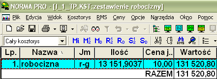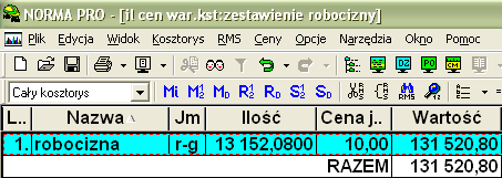 Jeden z Użytkowników programu Norma wstawił do kosztorysu „okrągłą” wartość stawki robocizny (10 zł/r-g) i to, co zobaczył, przywołując na ekran zestawienie robocizny, bardzo mu się nie spodobało (patrz Rys. 1.). Wcale mu się nie dziwię. Wygląda to jak ewidentna pomyłka programu. Przecież każde dziecko wie, że mnożenie przez 10 to jedynie przesunięcie przecinka, bez zmiany cyfr. Tymczasem tu widzimy, że 13 151,9037 razy 10 daje 131 520,80 zamiast 131 519,04.