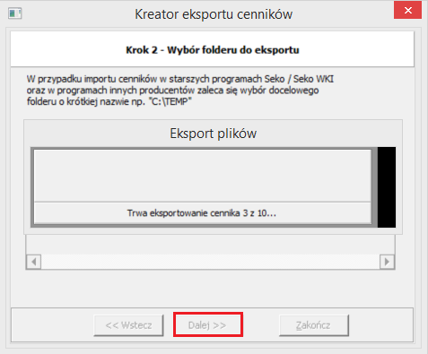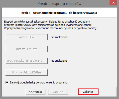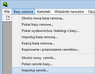 Aktualnie pliki cenników, w formacie akceptowanym przez nasze programy, można wyeksportować wyłącznie z poziomu przeglądarki baz cenowych.
