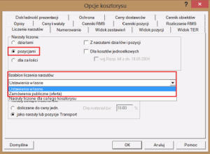 - Zamówienia publiczne (oferta) - narzuty domyślnie liczone są pozycjami;