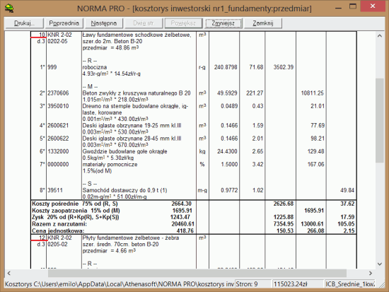 - Kosztorys inwestorski - narzuty domyślnie liczone są pozycjami.