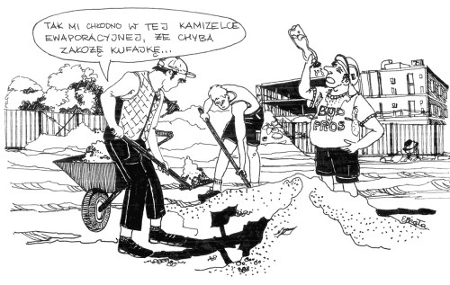 O ile "biurowi" budowlańcy mogli liczyć na trochę chłodu i nie byli wystawieni na bezpośrednie działanie słońca, to dla pracujących na rusztowaniach, układających chodniki, drogi etc. taki komfort już nie był dostępny. Mimo skwaru roboty posuwały się dalej. Jednak długotrwała, intensywna praca w takich warunkach powoduje nie tylko dodatkowe zmęczenie i stres cieplny, ale prowadzi również do zaburzeń w funkcjonowaniu układu krwionośnego. Spada więc wówczas wydajność pracy oraz rośnie liczba wypadków na stanowiskach pracy. Organizm człowieka jest w stanie przystosować się do szerokiego zakresu temperatury zewnętrznej dzięki mechanizmom termoregulacyjnym. W przypadku gorąca najpierw u człowieka następuje rozszerzenie naczyń krwionośnych skóry i wzrost skórnego przepływu krwi. Gdy temperatura otoczenia przekroczy 28 - 32°C uruchomiony zostaje drugi mechanizm termoregulacyjny, a mianowicie wydzielanie potu. Z panującym na budowie gorącem można sobie poradzić wspomagając nasz organizm. I choć klimatyzacji nie zamontujemy, możemy siebie/ naszych pracowników wyposażyć w odzież, która sprawi, że choć trochę będzie nam/ im chłodniej. Badania wpływu chłodzonych części ciała na efektywność odbierania ciepła z organizmu wykazały, że najbardziej efektywne jest chłodzenie głowy i szyi, rąk oraz stóp. Wśród dostępnych na rynku ubiorów chłodzących możemy wybrać kamizelki wkładane przez głowę (lub zapinane na klamry/ zamek błyskawiczny/ rzepy), koszulki, osłony karku, wkładki pod kask, osłony czoła pod kask, opaski na szyję, czapki, czepki, czapki z daszkiem, kapelusze. Niektóre z nich mogą być dodatkowo ognioodporne lub/ i wyposażone w elementy odblaskowe.
