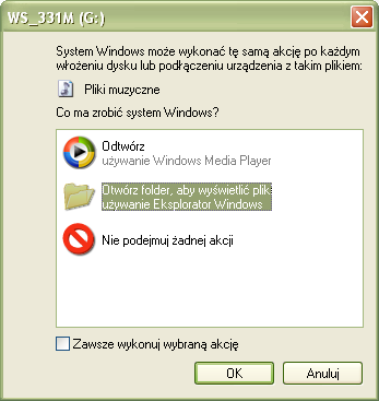 . Dzięki temu program nie będzie pytał o wartość obmiaru. Następnie podłączamy do komputera dyktafon i w momencie gdy na ekranie pojawi się okno dołączania urządzenia zewnętrznego wybieramy opcję „Otwórz folder ...”,