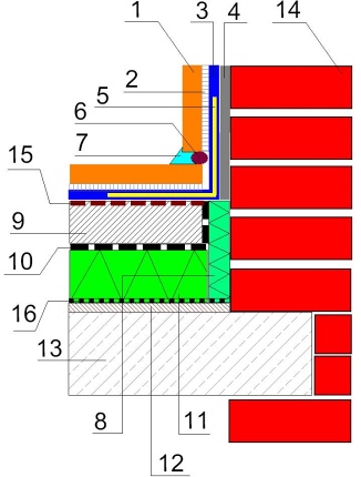 Szczegół izolacji styku podłogi ze ścianą I klasa obciążenia wilgocią wg ZDB - jastrych anhydrytowy