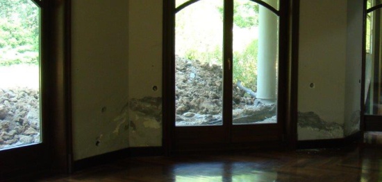 fot. 3 - łuszczenie się warstw wykończeniowych oraz krystalizacja soli to także skutek nadmiernego zawilgocenia budynku (fot. autora)