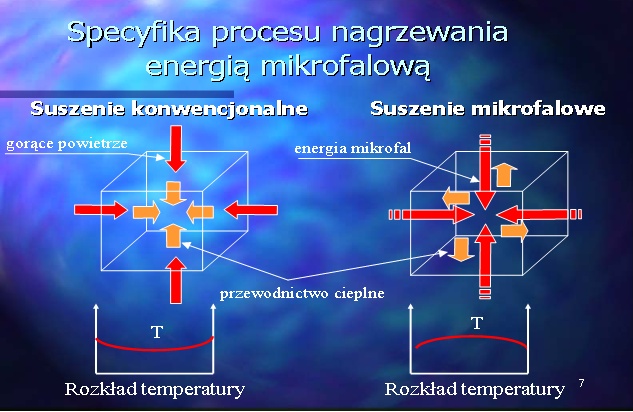 rys. 4 - zasada osuszania konwencjonalnego i mikrofalowego ([1], [8])