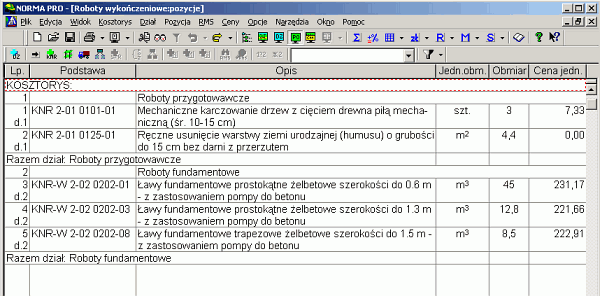 Dlatego zawsze podkreślam, że kosztorys to nie śmietnik, do którego byle jak wrzucamy odpadki, lecz poważny dokument, w którym powinien panować porządek. Aby taki porządek zaprowadzić, powinniśmy przede wszystkim przestrzegać technologii wykonania prac – rozpoczynając od robót przygotowawczych, ziemnych, fundamentów, poprzez ściany aż po dach, a na samym końcu możemy umieścić małą architekturę. Oczywiście są to typowe przykłady, bowiem będziemy mieli prace, w których wymienimy np. roboty wodno-kanalizacyjne, gazowe i wykończeniowe.