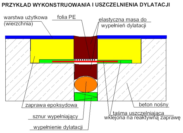 Prawidłowe zaprojektowanie dylatacji, jej umiejscowienie, wyprofilowanie oraz dobór materiału do wypełnienia (zazwyczaj stosuje się masy poliuretanowe, poliuretanowo-epoksydowe i tiokolowe), dodać trzeba - odpornego na projektowane obciążenia mechaniczne, chemiczne i termiczne, decyduje w dużym stopniu o jakości i trwałości posadzki.
