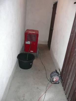 fot. 7 i 8 – Osuszanie ścian osuszaczami mikrofalowymi – fot. C. Magott