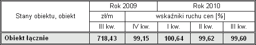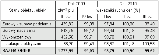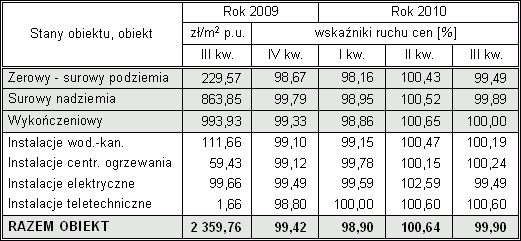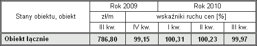 Oznacza to, że w III kwartale 2010 r. średnia cena budynku wielorodzinnego stanowi jedynie 97,65 % ceny budynku notowanej w III kwartale 2009 r.