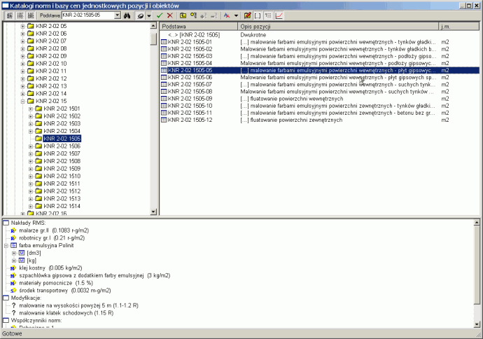 Staramy się znaleźć w bazie pozycję najbardziej zbliżoną technologicznie do tej, jaką chcemy otrzymać. Po odnalezieniu wzorca przenosimy go do naszego kosztorysu.