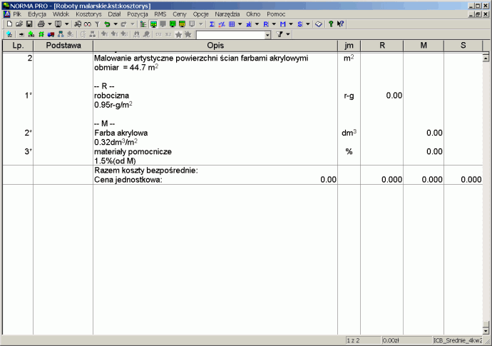 Jak widzimy, jeden kosztorys może zawierać zarówno pozycje kalkulowane metodą szczegółową (oryginalne z bazy norm, albo kalkulacje indywidualne), jak i pozycje uproszczone – bądź opracowane przez nas, bądź „podciągnięte” z bazy cen jednostkowych robót.