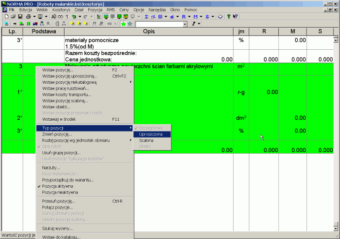 Najprościej – kopiujemy dowolną pozycję szczegółową, a następnie klikając prawy klawisz myszy wybieramy -> Typ pozycji -> Uproszczona.