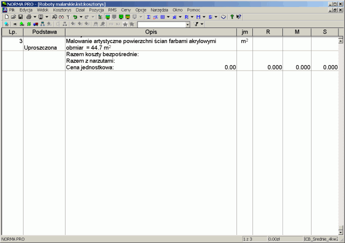Teraz wystarczy zmienić opis i wprowadzić obmiar oraz cenę jednostkową.
